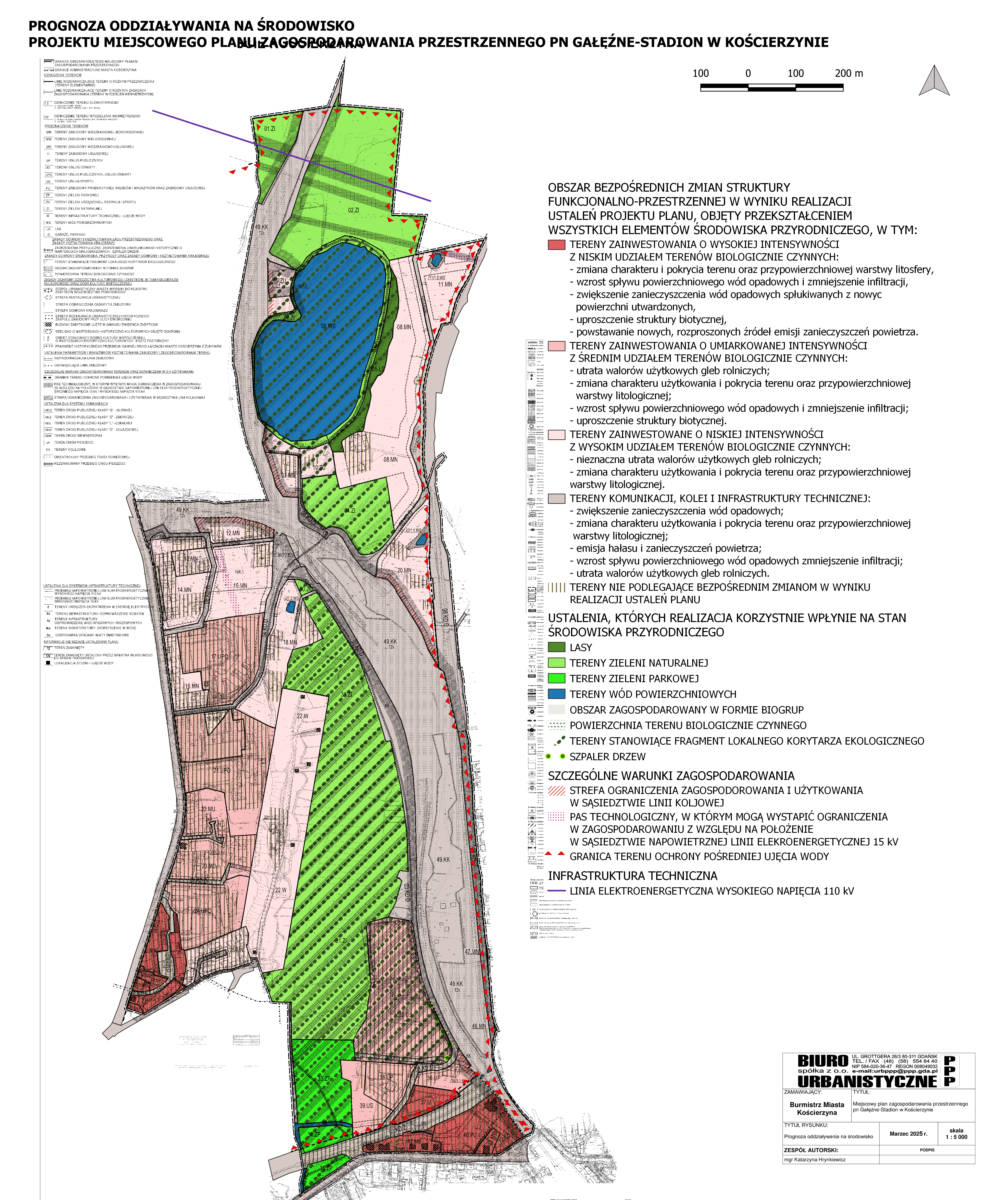 Na podstawie art. 17 pkt 9 ustawy z dnia 27 marca 2003 r. o planowaniu i zagospodarowaniu przestrzennym (t. j. Dz. U. z 2024 r., poz. 1130 z późn. zm.) w nawiązaniu do art. 67 ust. 3 pkt 4 ustawy z dnia 7 lipca 2023 r. o zmianie ustawy o planowaniu i zagospodarowaniu przestrzennym oraz niektórych innych ustaw (Dz. U. z 2023 r. poz. 1688) oraz zgodnie z art. 54 ust. 2 ustawy z dnia 3 października 2008 r. o udostępnieniu informacji o środowisku i jego ochronie, udziale społeczeństwa w ochronie środowiska oraz ocenach oddziaływania na środowisko (t. j. Dz. U. z 2024 r. poz. 1112 z późn. zm.) w wykonaniu uchwały Nr XLV/409/21 Rady Miasta Kościerzyna z dnia 27 października 2021 r. w sprawie przystąpienia do sporządzenia miejscowego planu zagospodarowania przestrzennego terenu pn. „Gałęźne - Stadion” w Kościerzynie zawiadamiam o wyłożeniu do publicznego wglądu projektu miejscowego planu zagospodarowania przestrzennego terenu pn. „Gałęźne-Stadion” w Kościerzynie wraz z prognozą oddziaływania na środowisko w dniach od 21 marca 2025 r. do 14 kwietnia 2025 r.